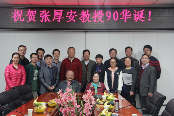 最后,张厚安教授同会议到场教职员工合影留念,老师们纷纷对张厚安教授及其夫人的到来表示感谢,并祝福两老能“跨过九零后的门槛,迈入零零后的步伐”,至此,张厚安教授90华诞座谈会圆满结束。
