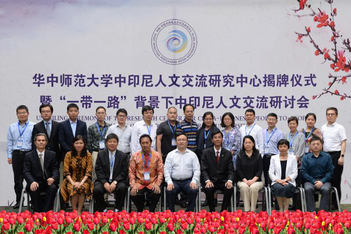 4月22日,中印尼人文交流研究中心揭牌仪式暨“一带一路”背景下中印尼人文交流研讨会在逸夫国际会议中心二楼会议室召开。印尼伊斯兰高校联盟主席汉尼夫教授、中国社科院亚太战略研究院许利平研究员、华中师范大学副校长夏立新、华中师范大学中印尼人文交流研究中心主任韦红共同为中心揭牌。国内各印尼研究中心负责人、我校相关职能部门负责人、中印尼人文交流研究中心全体人员参加。会议由我院副院长胡宗山主持。