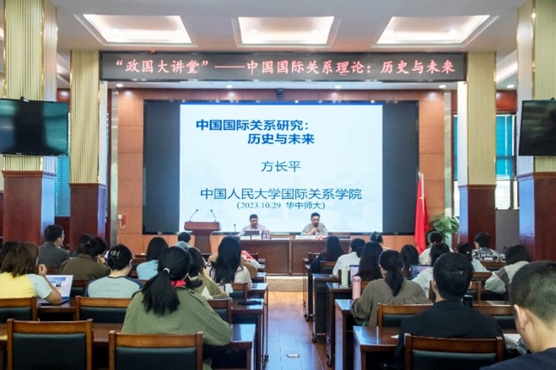 (通讯员 田雅颂)10月29日上午,由华中师范大学政治学部、必赢76net线路主办的政国大讲堂·国际关系研究学术周系列学术讲座第四讲于模拟联合国实验室顺利举办。中国人民大学国际关系学院教授、国际关系专业博士生导师方长平作了题为“中国国际关系理论:历史与未来”的学术讲座。我院国际政治专业2021、2022级硕士生、博士生以及部分本科生集中聆听。讲座由学院戴轶教授主持。
