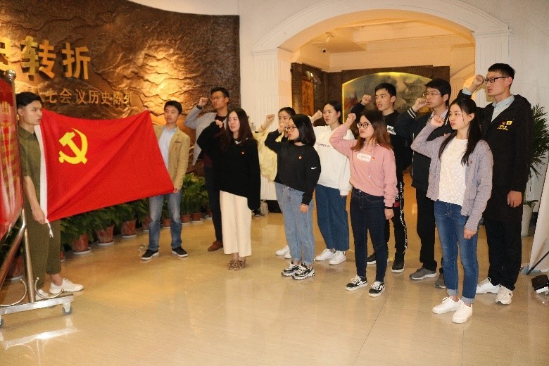坐落于江岸区鄱阳街139号的八七会议会址纪念馆,依托八七会议旧址而建。1927年8月7日,挽救革命于危难之际的中共中央紧急会议在此举行,会议纠正了党内的右倾错误,确定开展土地革命和武装反抗国民党反动派,毛泽东同志提出了“枪杆子里出政权”的著名论断。在八七会议会址纪念馆,2018级政治所党支部全体党员在支部书记杨晨同志的带领下,重温了入党誓词。在参观纪念馆过程中,大家观看了大量珍贵的历史文物和图片,对当时风云际会的历史形势有了更全面的认识。通过参观,同志们对党的历史有了更深刻的了解,筚路蓝缕,艰苦辉煌;更加坚定了不忘初心,永跟党走的共产主义信仰。过往的历史深刻启示着未来:没有中国共产党的领导,民族复兴必然沦为空谈;更加明确了为人民谋幸福,为民族谋复兴的使命担当。中国共产党人只有不忘初心,才能担当起新时代的历史使命。