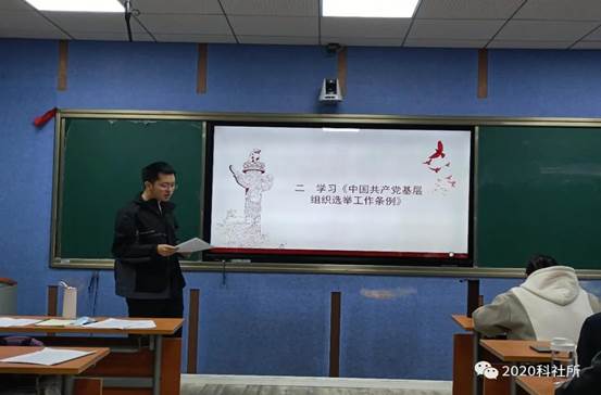 为贯彻落实《教育部直属高校党组织迎接建党100周年行动方案》精神,深入学习《中国共产党基层组织选举工作条例》,提高支部党员政治素质,增强支部活力与凝聚力,科社所研究生第二党支部十一月份主题党日活动于11月20日在学院304教室顺利开展。本次主题党日活动由支部第一党小组筹备策划,支部书记洪世强主持,全体党员参加。