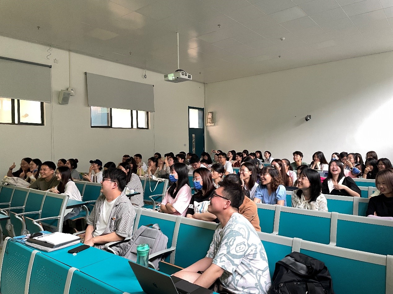 首先,邓俊豪播放了2020级政治学系为师兄师姐们精心拍摄的毕业祝福视频《师兄师姐我想对你说》。2020级政治学系全体成员参与此次拍摄,视频内容包括班委成员回忆了师兄师姐在支部建设和班级活动方面曾给予过的帮助和指导、各个导师组的同学对师门的学长学姐的的临别赠言、五个党小组分别拍摄的集体毕业祝福。一个个师兄师姐非常熟悉的校园场景、一句句朴实、幽默又饱含深情的话语,让师兄师姐在笑声中忆起了自己的读研生活,视频播放完毕后,持久热烈的掌声在教室内回荡。