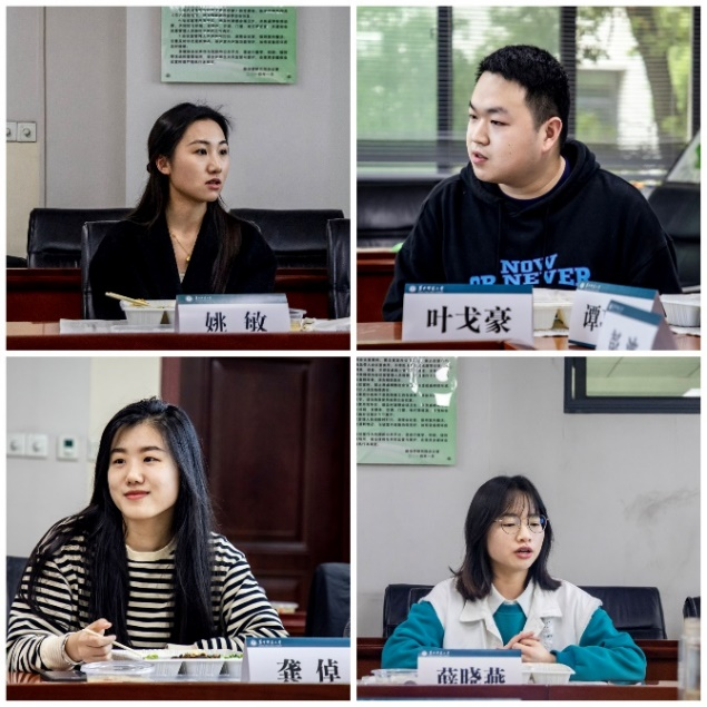 为拉近师生距离,深入调研学院学生需求,4月3日,学院2023年第一期主题午餐会于313会议室举行,本期午餐会的主题是就业。院党委副书记潘广炜,副院长王建国,研究生辅导员骆婉婷、沈国成,本科生辅导员魏露、郑泓韬出席午餐会,本硕博13名毕业生代表参加。