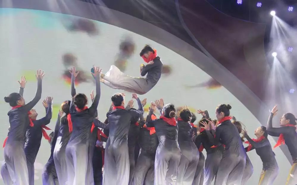 最后,主持人邀请所有参演人员上台拍照,全场观众起立互动联欢,现场充溢着青春生命的笑语与律动。