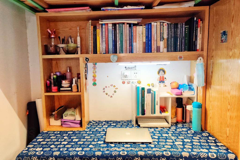 有的寝室的书柜上摆满了书籍,贴上了“读万卷书,行万里路”等励志标语,展现了我院学子良好的学习品质。